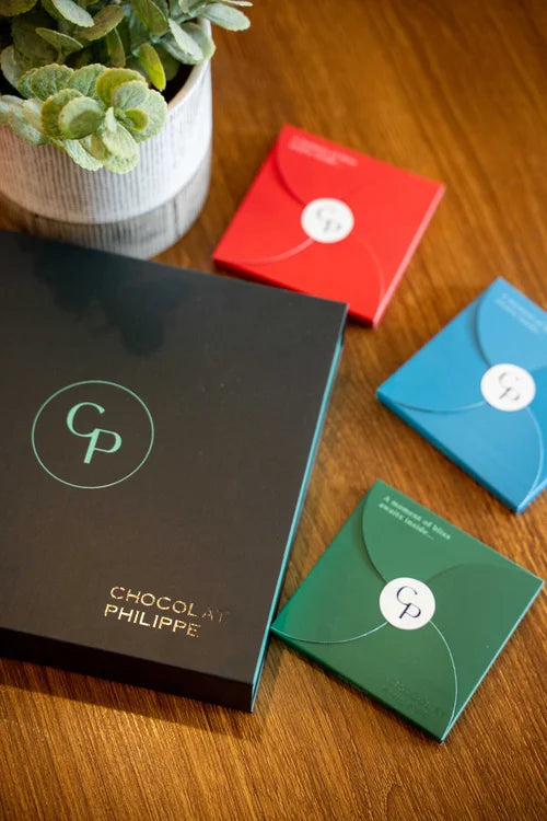 Every box is a reflection of care and calm, designed to make the simple act of opening chocolate feel like a moment of ceremony.